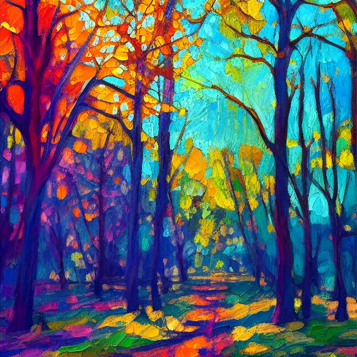 左图是原画作,右图是艺术家 Erin Hanson 直接使用自己的作品,通过 AI 平台 Stable Diffusion 创建的图像。二者的颜色和模拟笔触极其相似。在内容输出阶段,需要先由用户输入描述文本(prompt)等信息,模型生成各种 「原先内容的其他潜在表现形式」,根据用户的筛选,最终得到新的内容。
